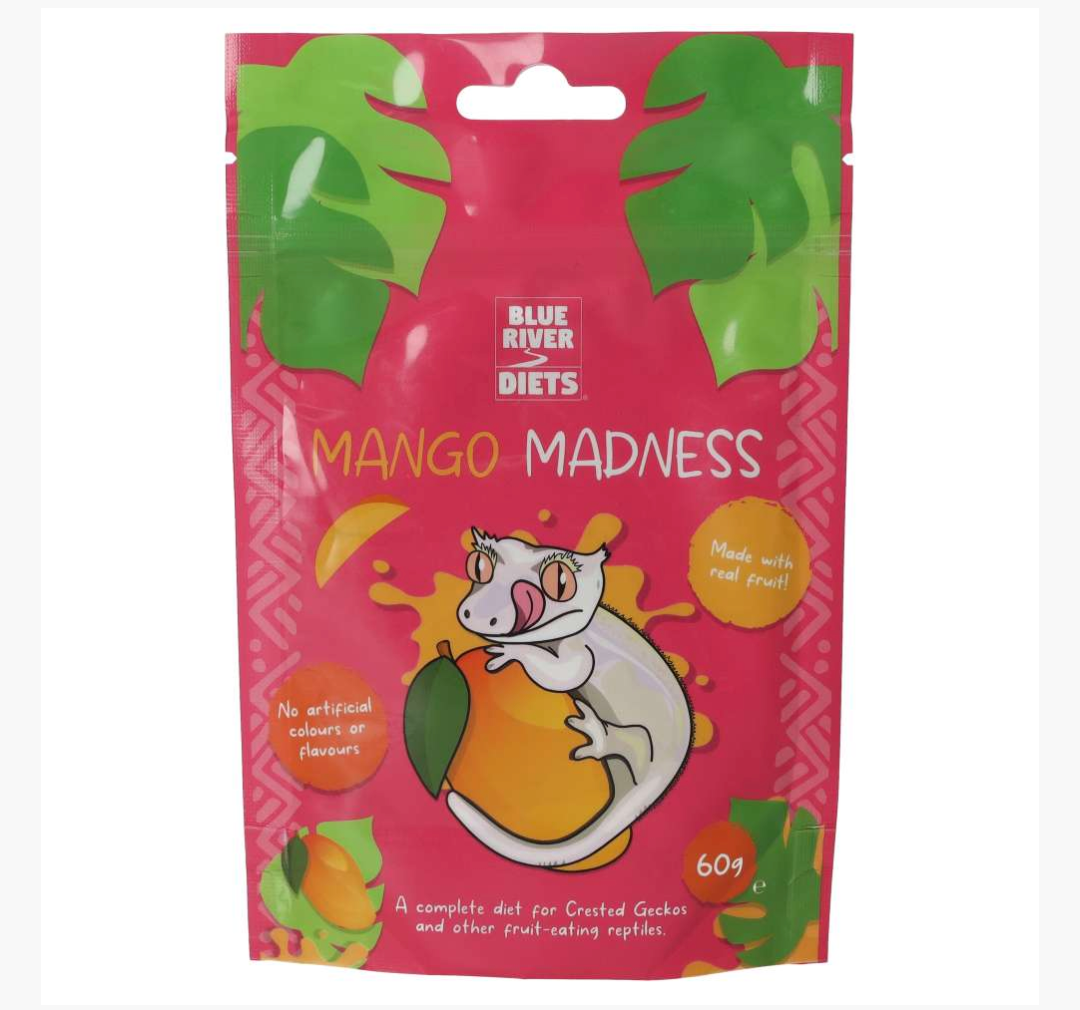 Mango Madness is a complete and balanced diet for Crested Geckos and other fruit eating reptiles. Made with natural ingredients, it provides essential protein, fibre, vitamins, minerals, and antioxidants. Fortified with probiotics to aid gut health, Blue River Diets ® provides the ultimate gecko food for your reptiles’ well-being.
