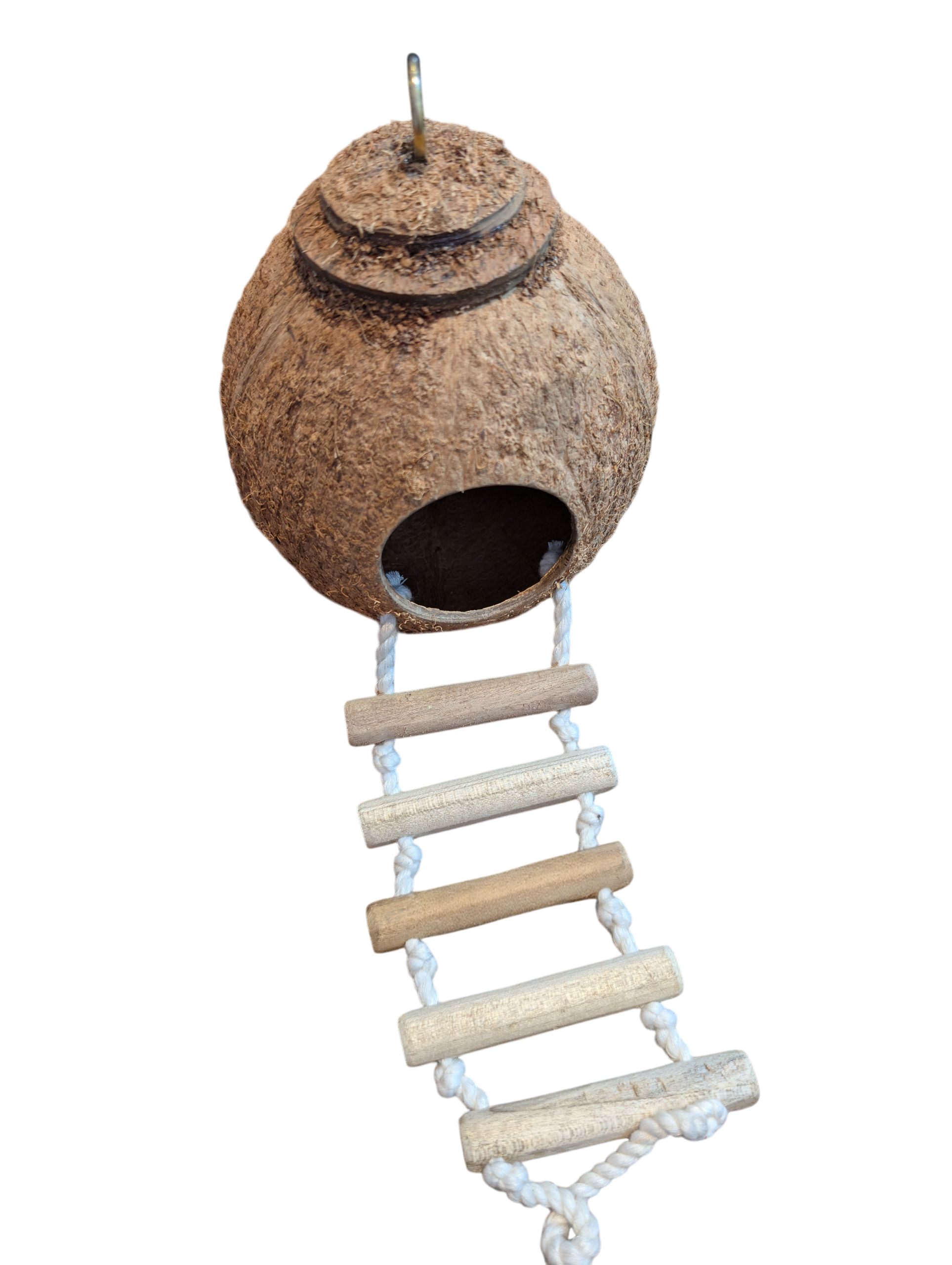 The Coco Shell with Ladder offers a naturalistic hide combined with easy access for your reptile. Crafted from durable coconut shell, it provides a secure shelter that mimics natural habitats, while the attached ladder encourages climbing activity, promoting exercise and environmental enrichment. Ideal for reptiles requiring both shelter and stimulation in their enclosure.